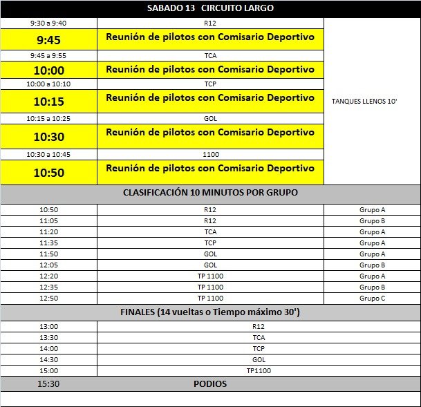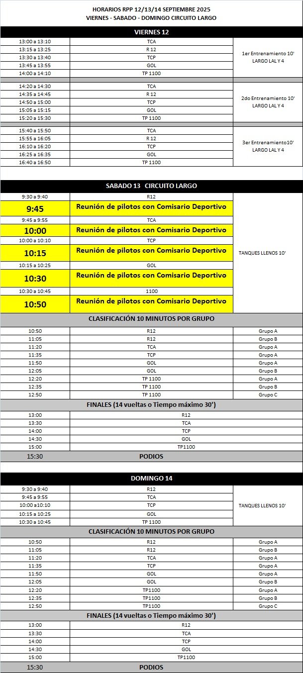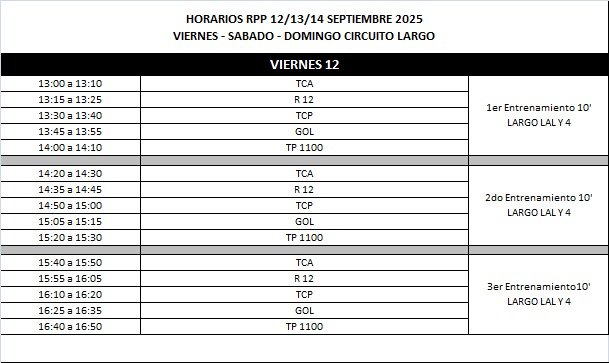 VIERNES: Tres tandas de entrenamientos libres de 10 minutos para cada categoría.