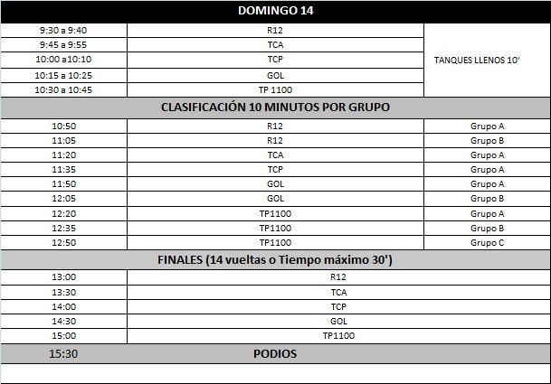 DOMINGO: Nuevamente habrá una tanda de “tanques llenos”, y luego será el turno de clasificaciones y finales, válidas por la 8ª fecha del campeonato.